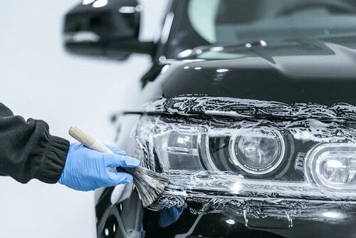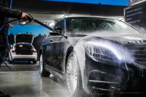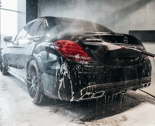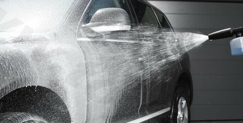Взял только пену и воду, за 7 минут очистил кузов и лобовое стекло от мошек и пыли. Всë просто и удобно