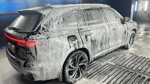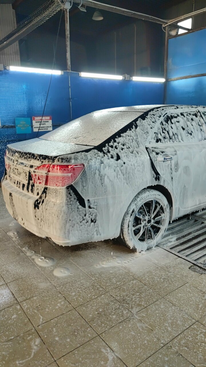 Кайфую от процесса! Шипит всё, пенится, прям как в кино. Сделал паузу, кофеек купил в автомате, красота. Потом смыл и тачка засверкала
